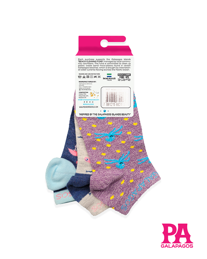 Dale vida a tus pies con nuestras medias llenas de color y diseños de las Galápagos. Con patrones y diseños únicos e icónicos que resaltan la esencia de Patas Azules y la flora y fauna de las «Islas Encantadas.» Cada par cuenta con una historia y está listo para la aventura en la playa, selva, montaña o ciudad. ¡Cómodas, originales y listas para destacar!