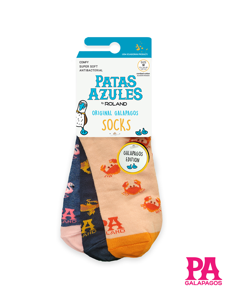 Dale vida a tus pies con nuestras medias llenas de color y diseños de las Galápagos. Con patrones y diseños únicos e icónicos que resaltan la esencia de Patas Azules y la flora y fauna de las «Islas Encantadas.» Cada par cuenta con una historia y está listo para la aventura en la playa, selva, montaña o ciudad. ¡Cómodas, originales y listas para destacar!