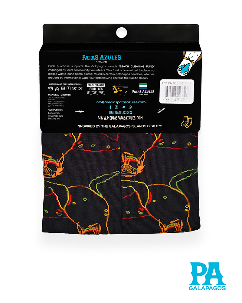 Dale vida a tus pies con nuestras medias llenas de color y diseños de las Galápagos. Con patrones y diseños únicos e icónicos que resaltan la esencia de Patas Azules y la flora y fauna de las «Islas Encantadas.» Cada par cuenta con una historia y está listo para la aventura en la playa, selva, montaña o ciudad. ¡Cómodas, originales y listas para destacar!