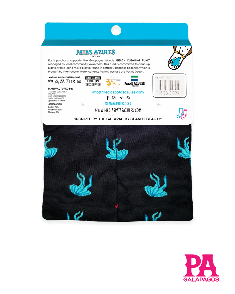 Dale vida a tus pies con nuestras medias llenas de color y diseños de las Galápagos. Con patrones y diseños únicos e icónicos que resaltan la esencia de Patas Azules y la flora y fauna de las «Islas Encantadas.» Cada par cuenta con una historia y está listo para la aventura en la playa, selva, montaña o ciudad. ¡Cómodas, originales y listas para destacar!