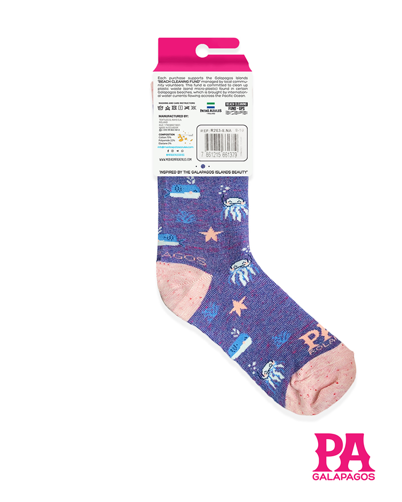 Dale vida a tus pies con nuestras medias llenas de color y diseños de las Galápagos. Con patrones y diseños únicos e icónicos que resaltan la esencia de Patas Azules y la flora y fauna de las «Islas Encantadas.» Cada par cuenta con una historia y está listo para la aventura en la playa, selva, montaña o ciudad. ¡Cómodas, originales y listas para destacar!