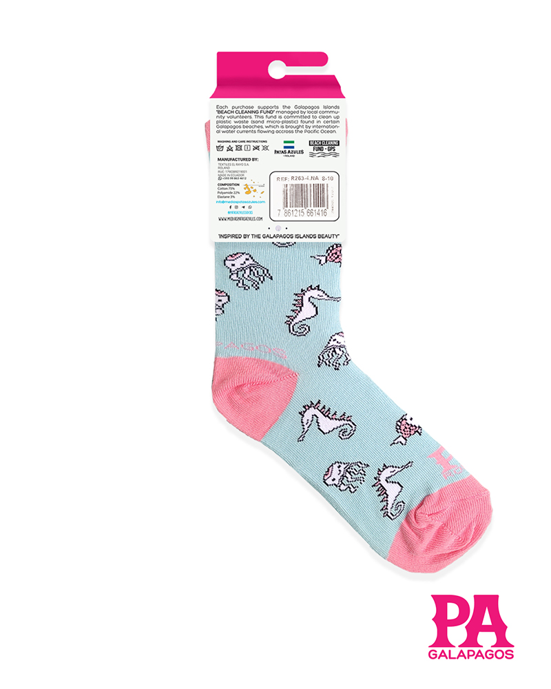 Dale vida a tus pies con nuestras medias llenas de color y diseños de las Galápagos. Con patrones y diseños únicos e icónicos que resaltan la esencia de Patas Azules y la flora y fauna de las «Islas Encantadas.» Cada par cuenta con una historia y está listo para la aventura en la playa, selva, montaña o ciudad. ¡Cómodas, originales y listas para destacar!