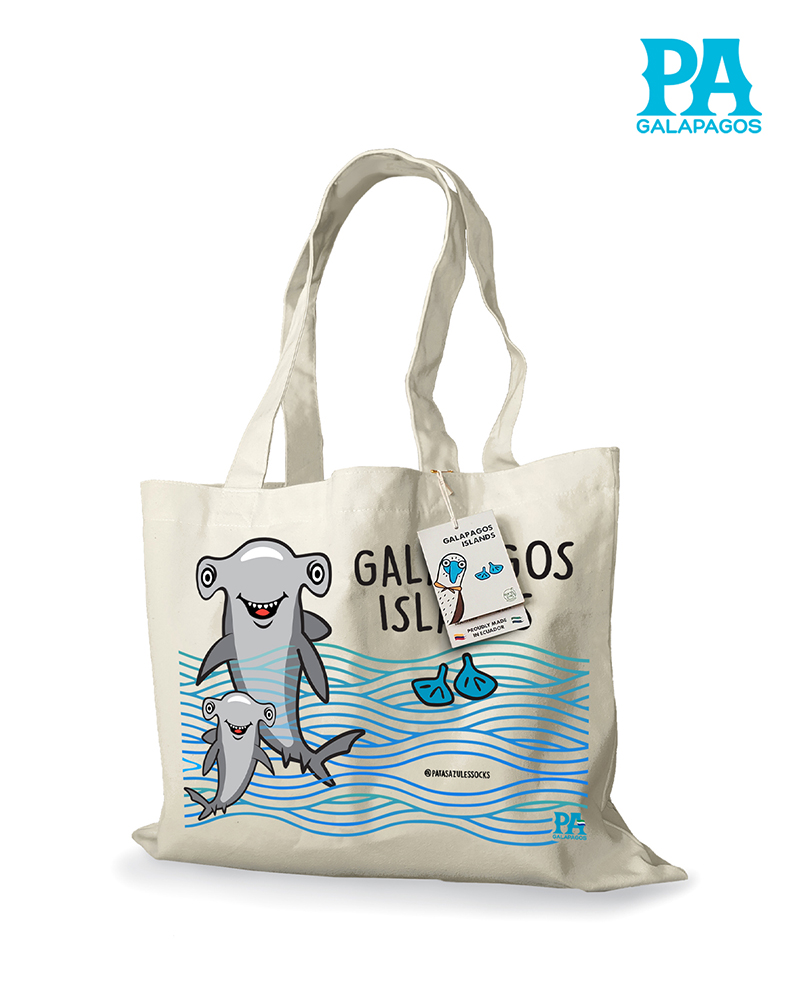 Tote Bag Horizontal Con Tiburones Martillo De Galápagos Y Olas Marinas